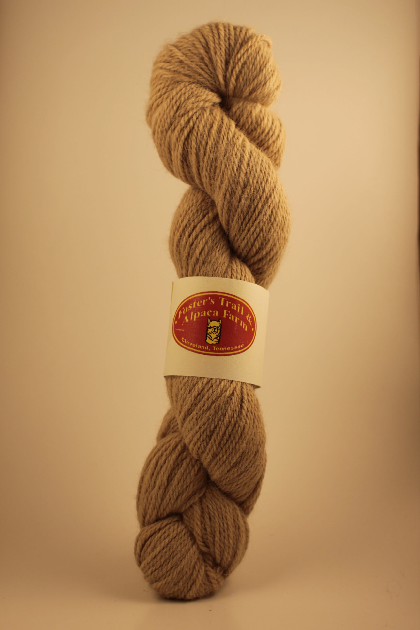Leather colored alpaca yarn skein from the alpaca Liberty from Foster’s Trail and Alpaca Farm in Cleveland, TN.